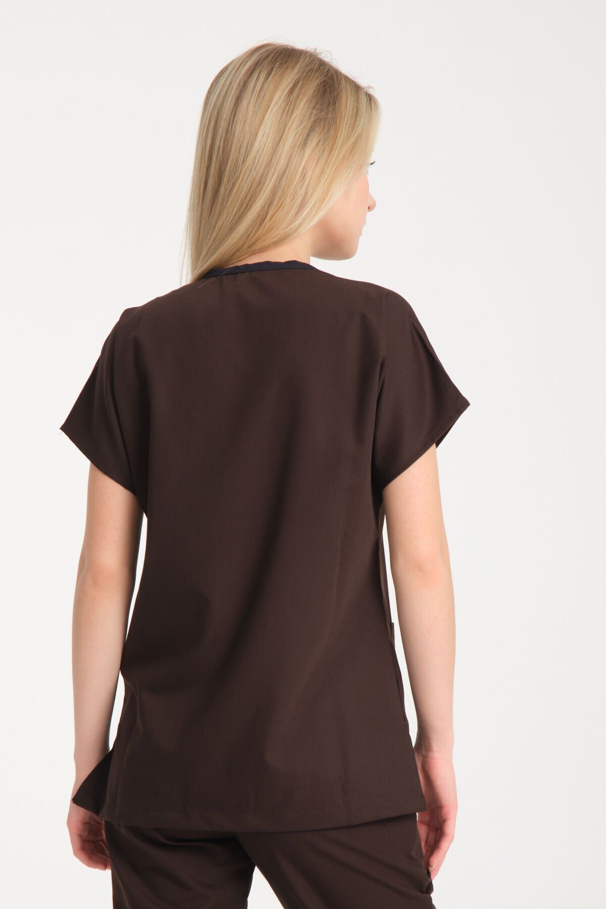 Kahverengi V Yaka Tek Üst Bayan Üniforma (Likralı)