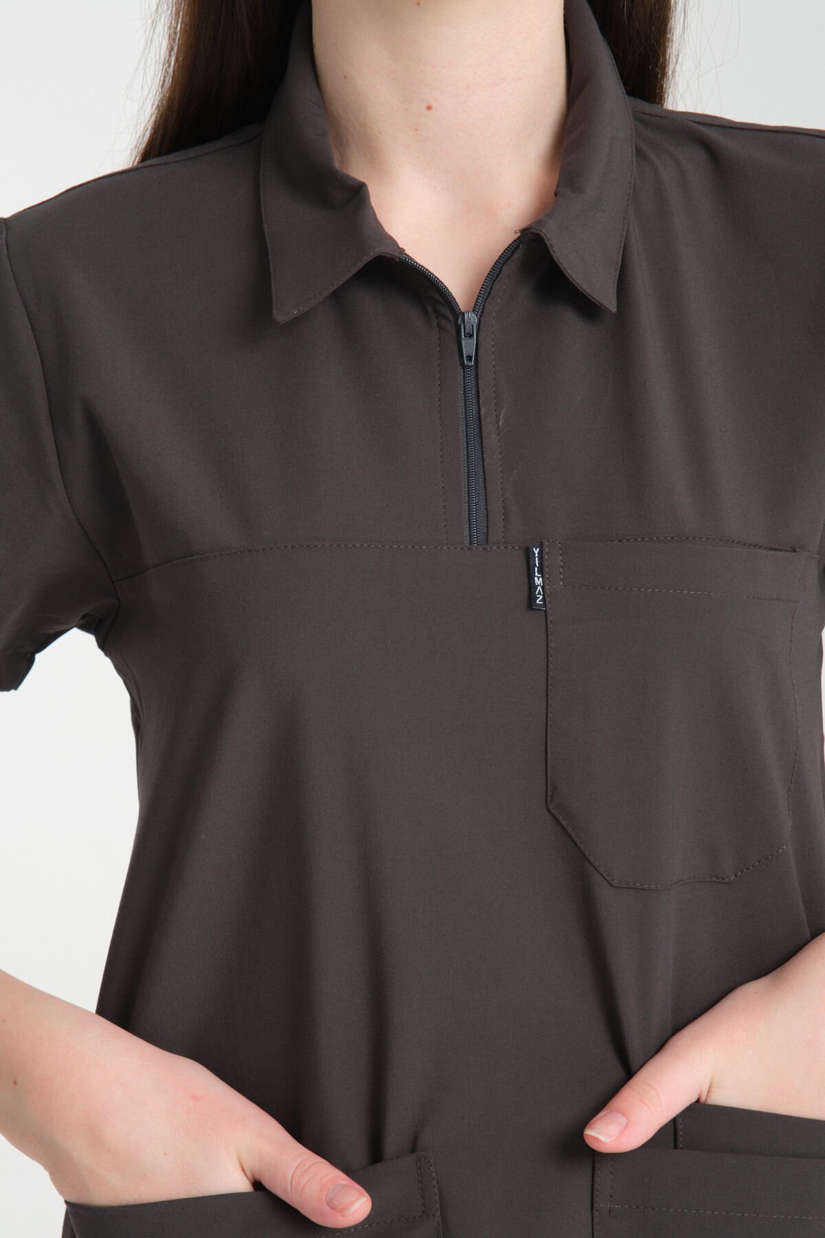 Koyu Kahve Polo Yaka Bayan Üniforma (Likralı)