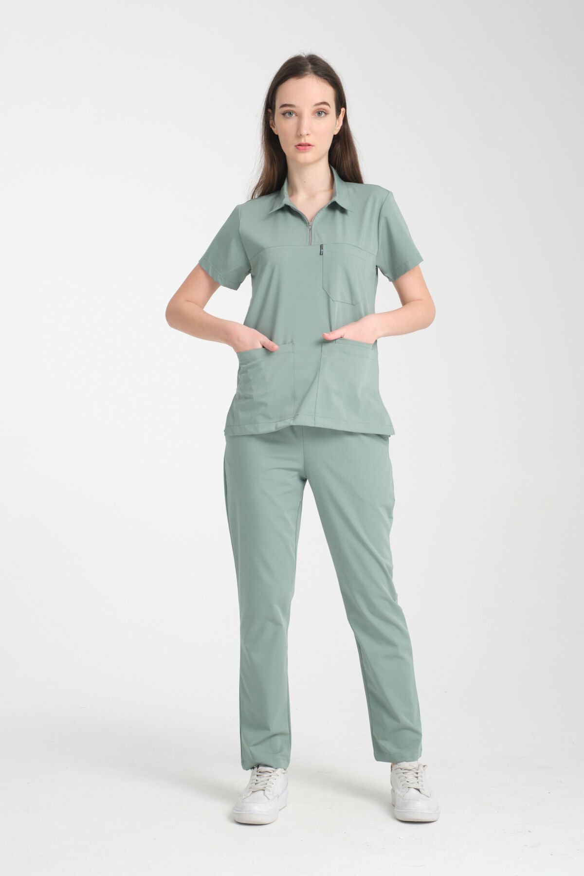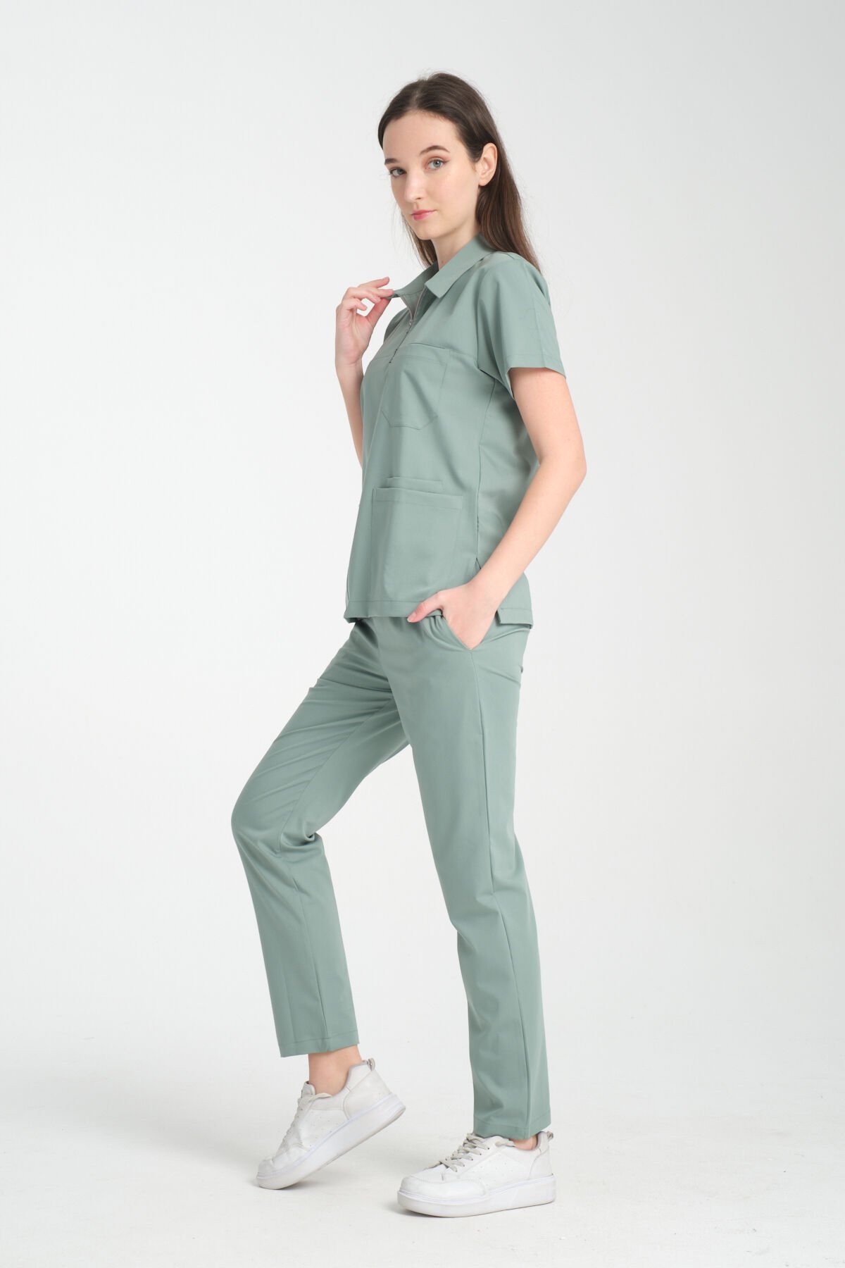 Küf Yeşili Polo Yaka Bayan Üniforma (Likralı)