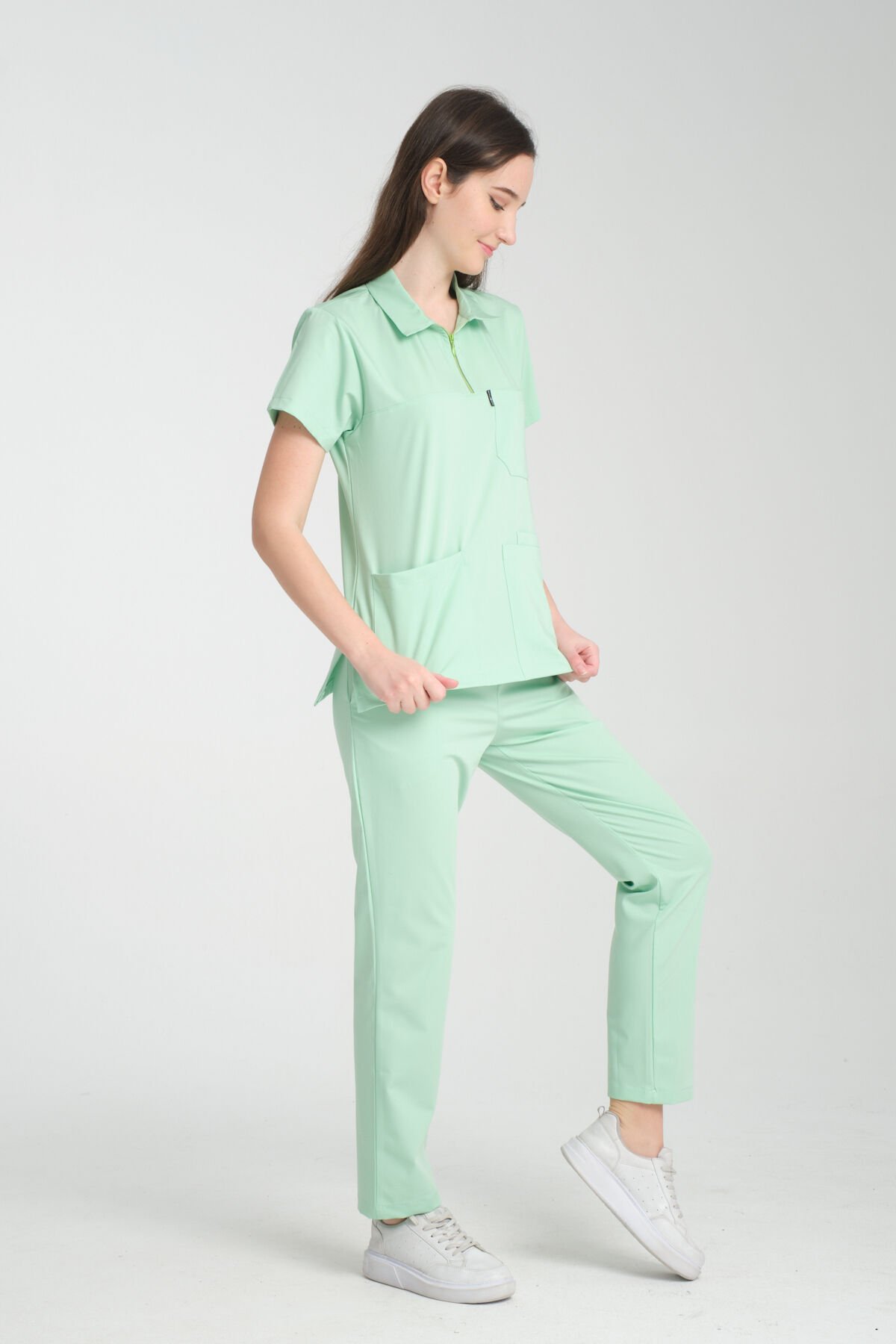 Mint Yeşili Polo Yaka Bayan Üniforma (Likralı)