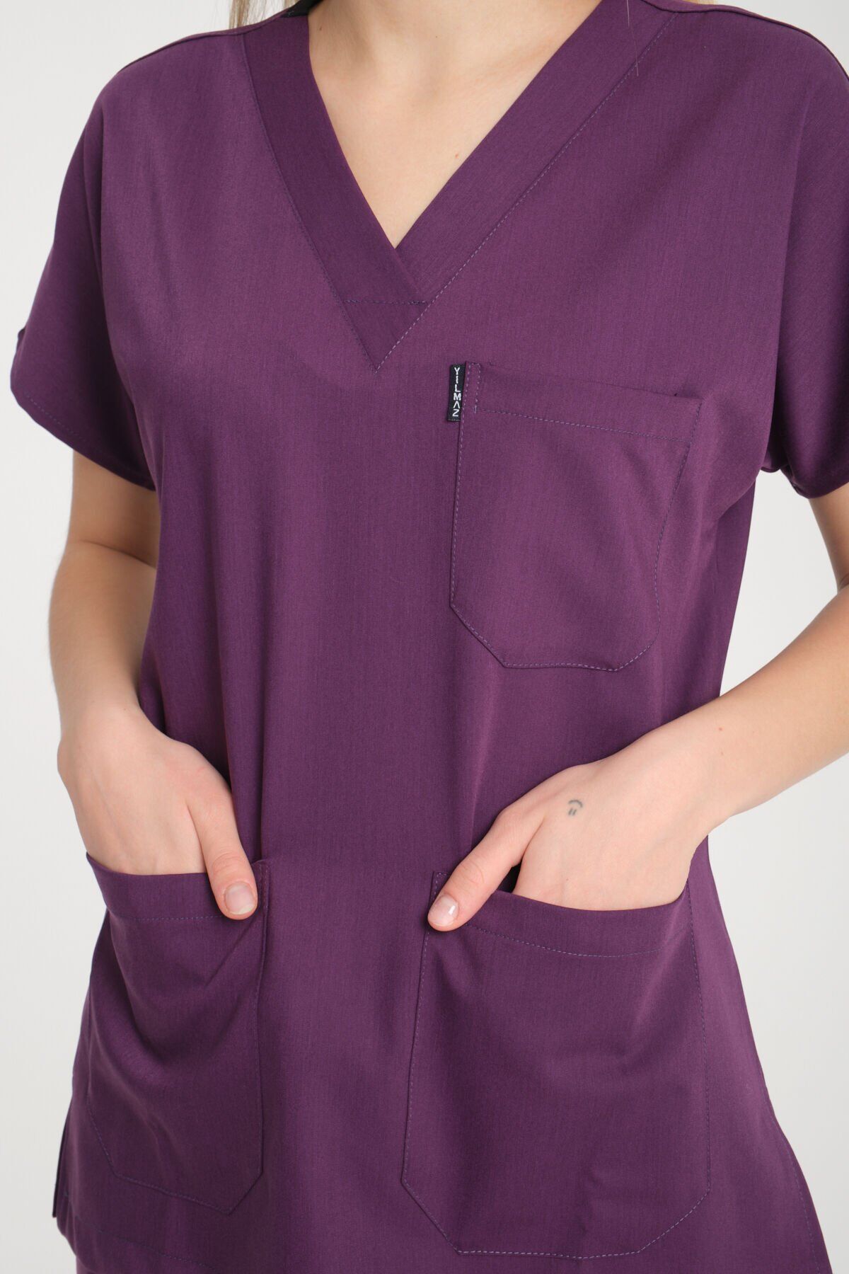 Mor V Yaka Tek Üst Bayan Üniforma (Likralı)