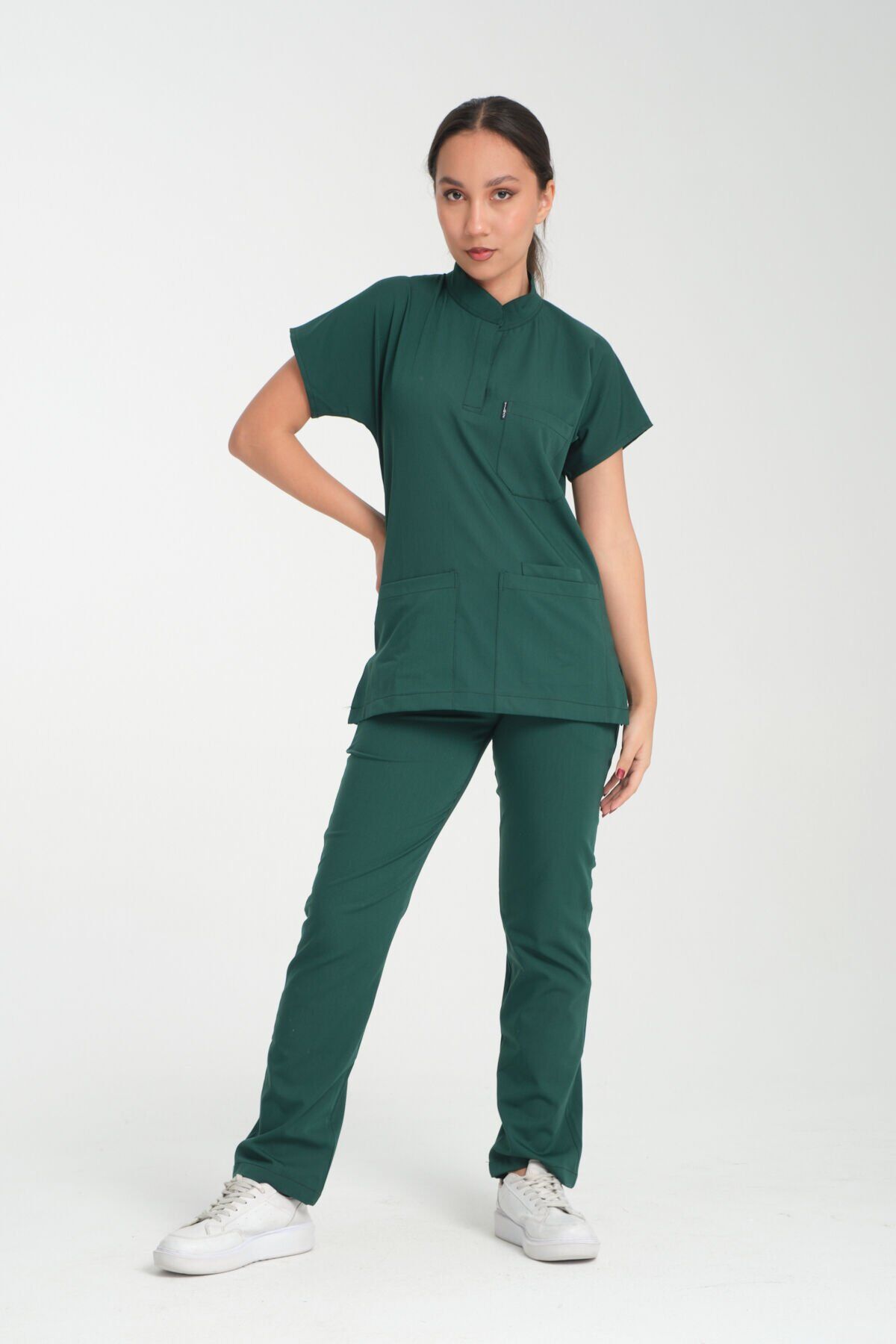 Zümrüt Yeşil Hakim Yaka Tek Üst Bayan Üniforma (Likralı)